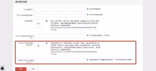 (2)点击报名进入活动报名页面,如发现有如下两个字段的招商入口,说明该商家是双11必抢会场的目标商家,请按照字段要求提交,如审核通过,即会在双11必抢会场获得展示机会。